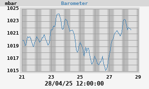 This week's min: 1021.3 mbar at 12:25:10 (Monday)